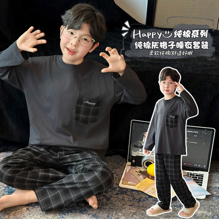 纯棉睡衣男童春秋新款长袖睡衣开衫家居服可外穿