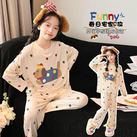 莫代尔家居服两件套开衫可外穿春秋季女童宽松长袖套装