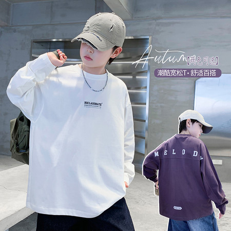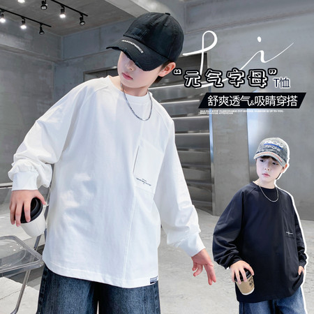 【130-180】男中大童春秋纯色字母口袋打底衫