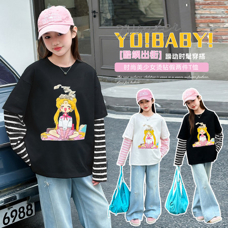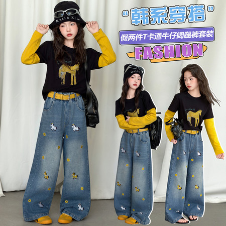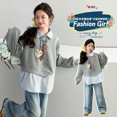 26春季新款 现货 女童假两件卫衣 配套牛仔裤也有