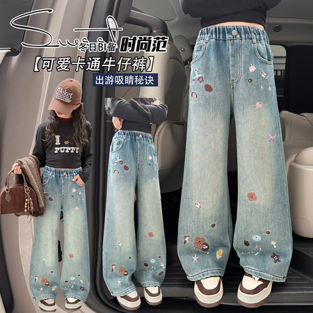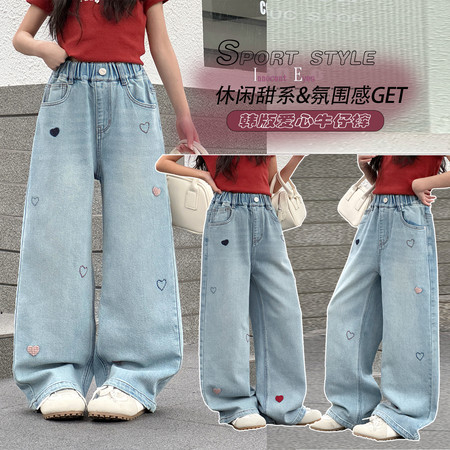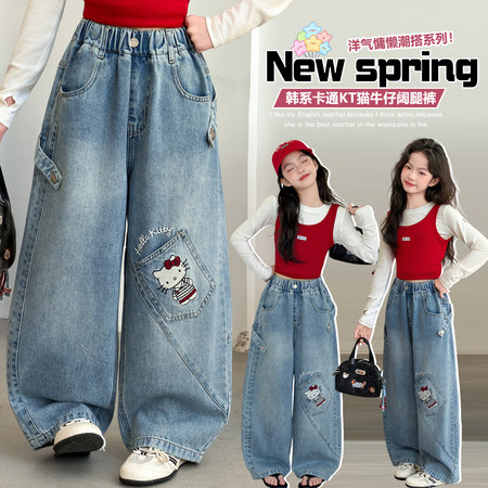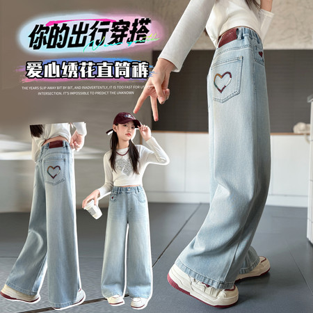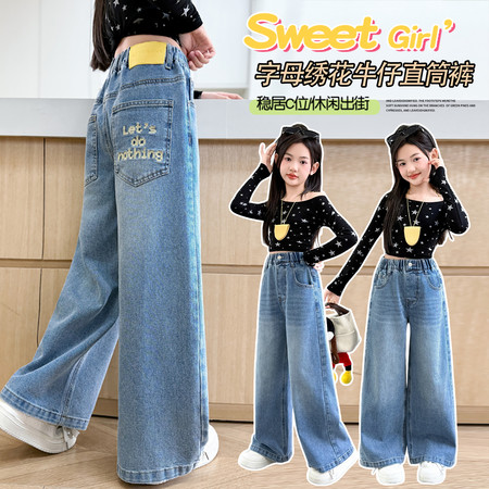 【26年新品春款】 女童牛仔阔腿裤2026新款春秋洋气直筒裤