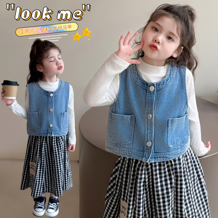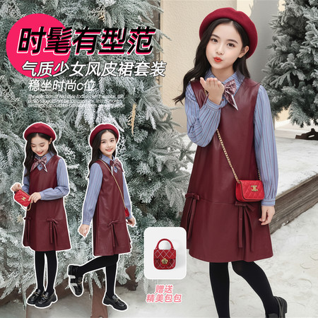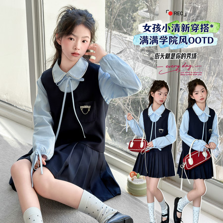 26春季新款 真两件 衬衣马甲裙两件套 女童裙子