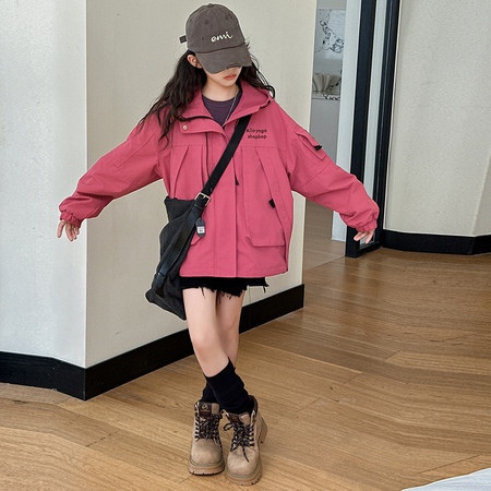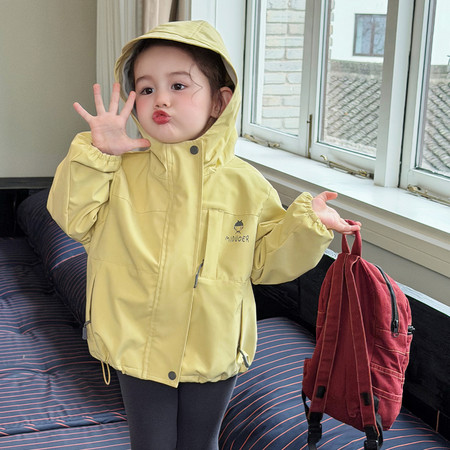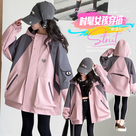 2025春秋新款中大男童韩版潮流拉链连帽冲锋衣外套