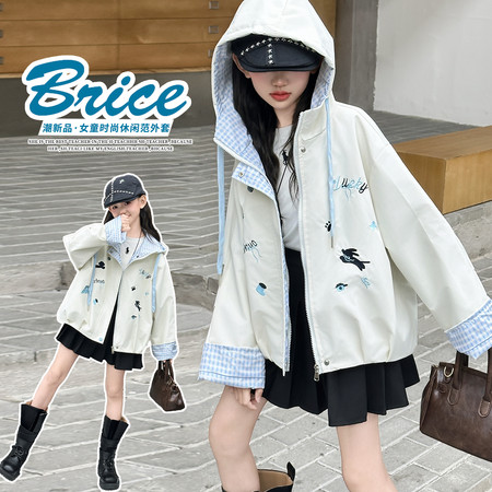 2025春秋新款中大男童韩版撞色拼接字母印花拉链连帽外套