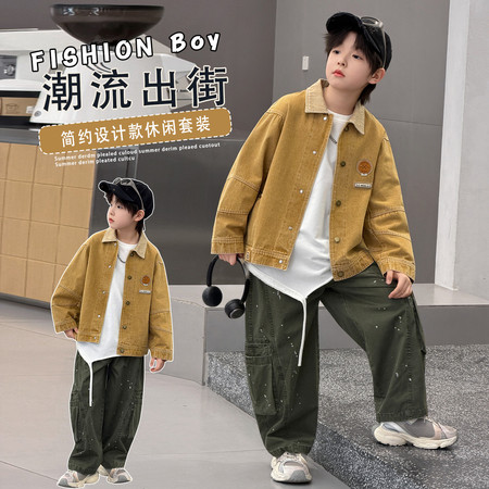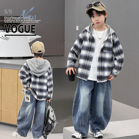 2026春季新款男童中大童年服拼接牛仔宽松炸街洋气长袖卫衣