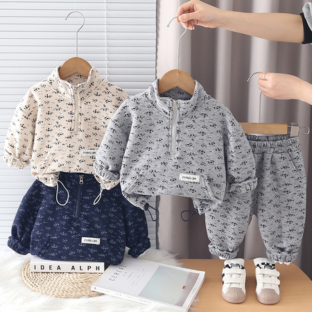2026春秋新款0-4岁中小童男童女童雪花印半拉链卫衣两件套