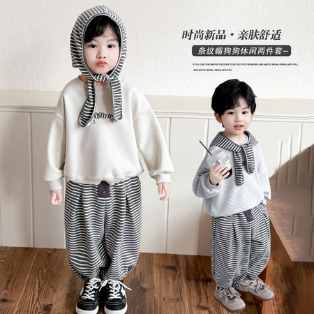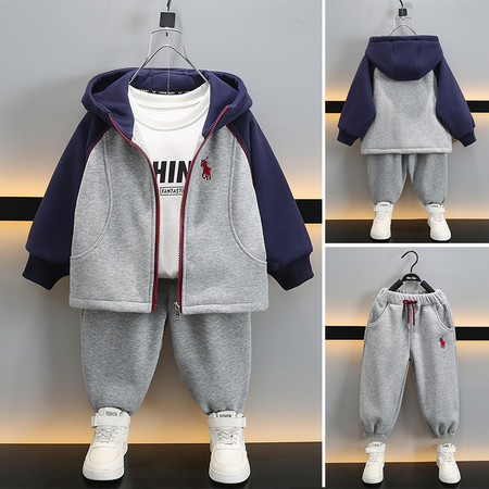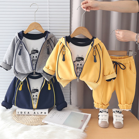 2026春秋新款0-4岁中小童男童女童拼接镶条连帽卫衣三件套