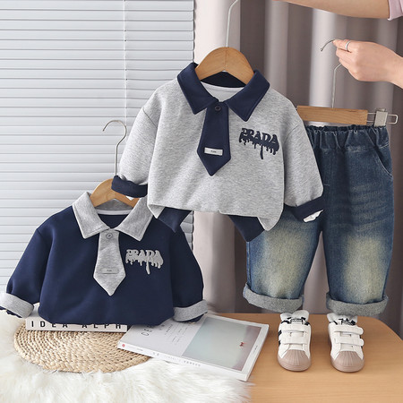 2026春秋新款0-4岁中小童男童女童印花字母领带卫衣两件套