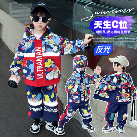 2025奥特曼春款新款亮灯奥特曼数码花布套装韩版潮