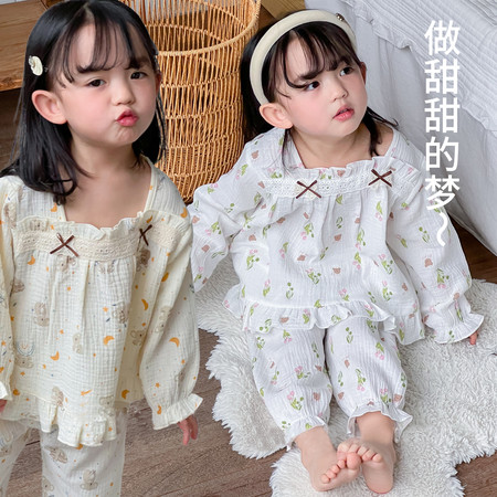 小女孩睡衣春秋纯棉甜美公主中大女童蕾丝长袖2026新款家居服