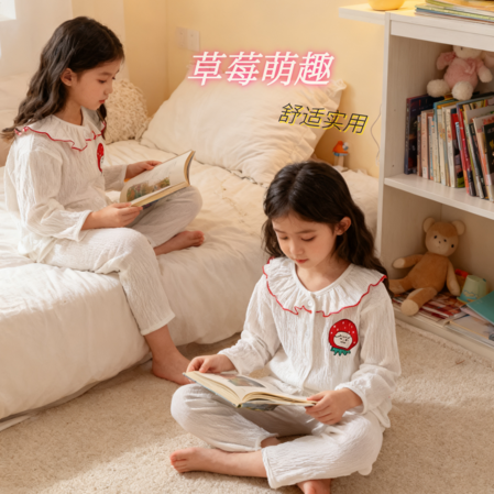 女童睡衣春装2026新款草莓儿童两件套中大童荷叶边家居服套装