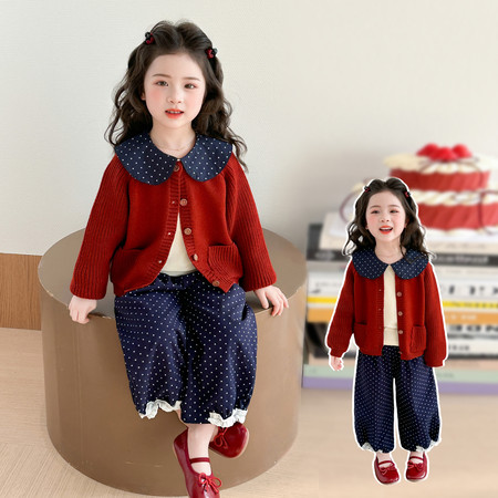 妮哆熊&2026春红色口袋毛衣三件套现货