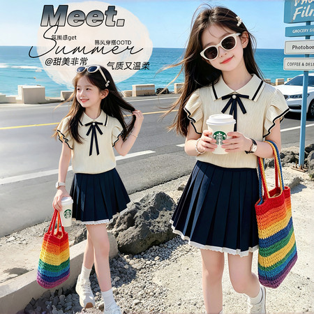 蕊蕊&R258款冰丝防晒开衫小花半身裙套装