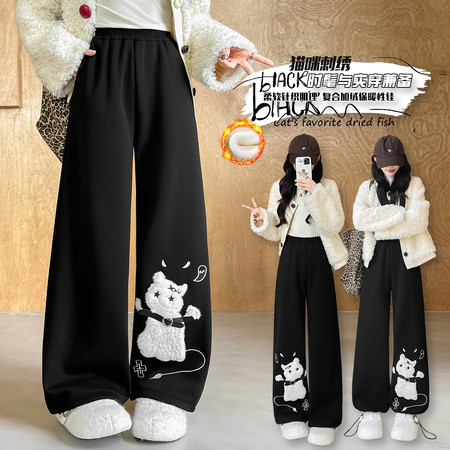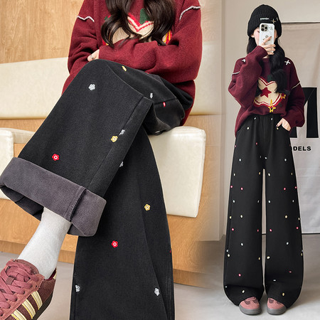 ¥45分销数 140+三七&SQ-T115爱心一粒扣卫裤冬季加绒爱心绣花窄版阔腿休闲裤爆【闪】