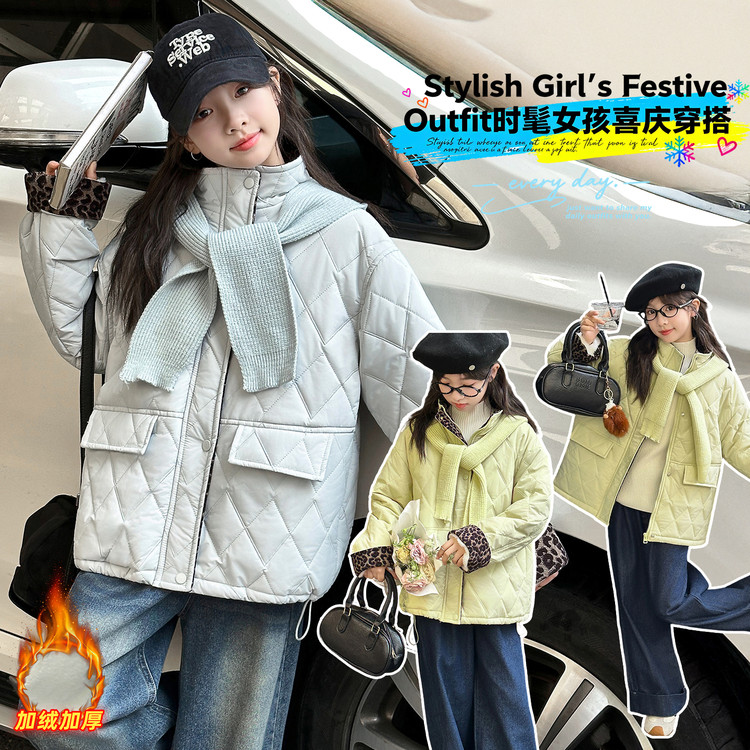 ¥48分销数 70+时尚小铺&2593现货2025冬款金边噢粒绒加厚中大童牛仔裤
